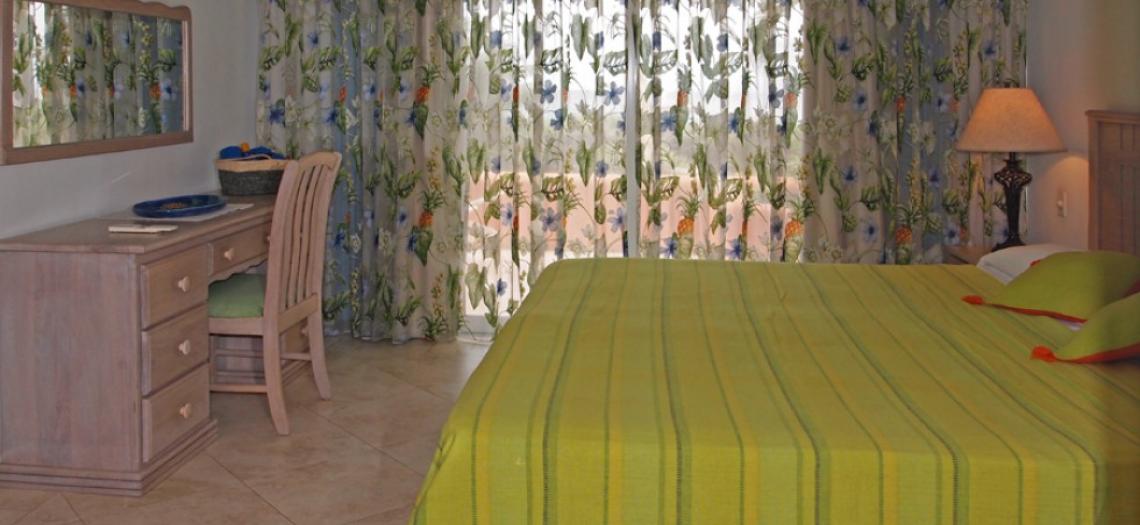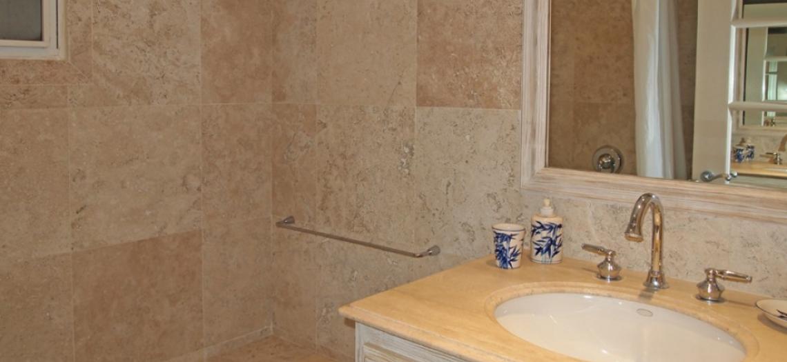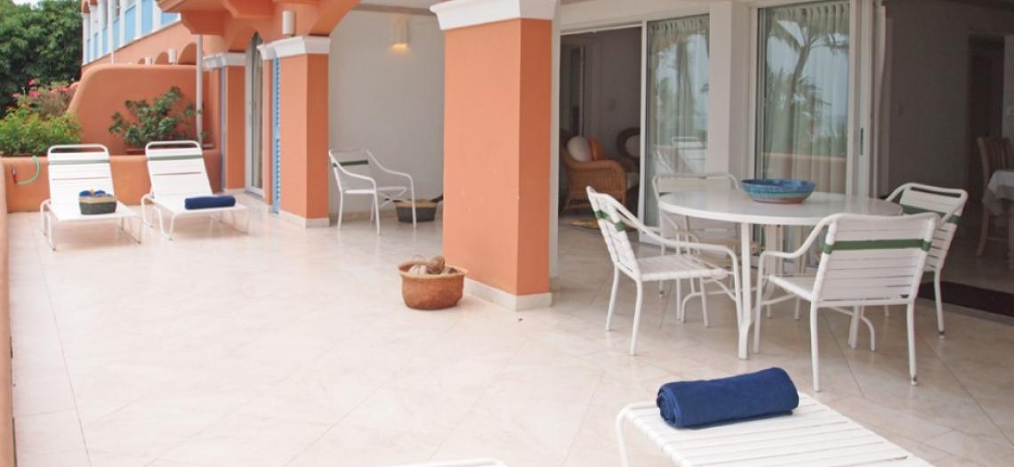 Unit 102 is a ground floor apartment with three bedrooms and three bathrooms.  There is a large patio, great for families with children and for sunbathing with access directly into the pool through a door which can be kept locked if you prefer.  All of the bedrooms have en suite bathrooms and have air conditioning as well as ceiling fans.