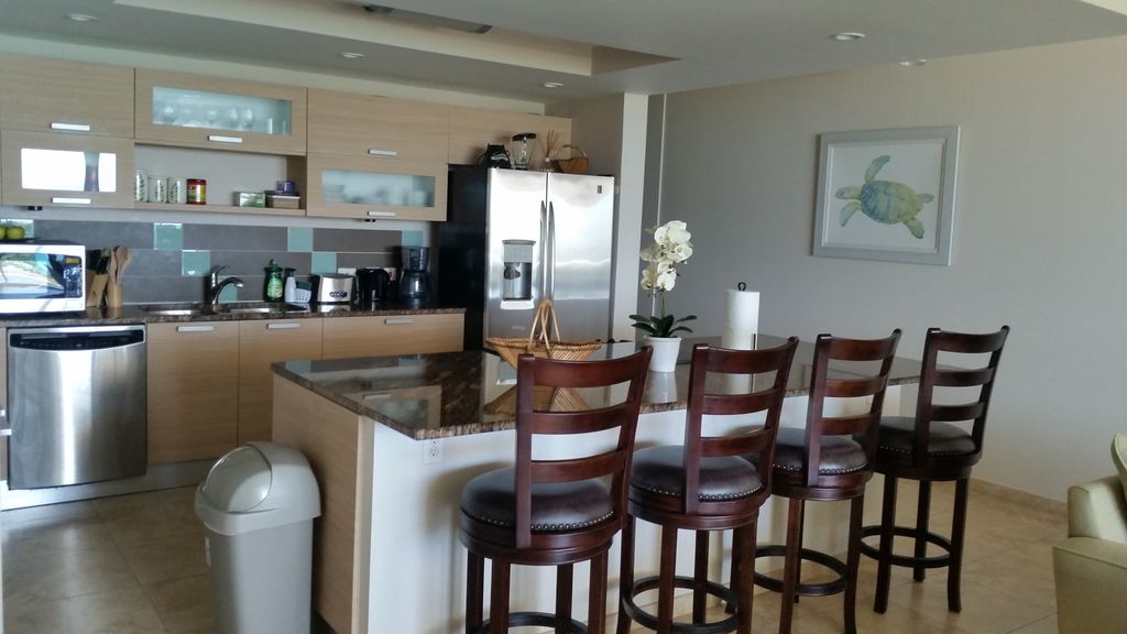 302 is an exquisitely furnished, three bedroom, three bathroom center unit located on the second floor. As with all units at Ocean One, it features a large balcony with a breath-taking, panoramic ocean view.