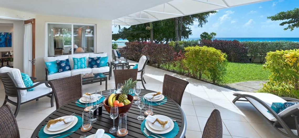 This condo is well outfitted with a comfortable open plan kitchen/living area offering a well equipped kitchen with casual seating at the granite countertop while the beautifully furnished lounge area is spacious and leads out to the covered patio which offer outdoor dining and lounge chairs for relaxing while looking out to the beautiful tropical garden with the pool just a few steps away. From the pool a pathway leads you down to a small gate leading directly out to the beautiful golden sand and Caribbean Sea. The three bedrooms is fully air-conditioned with en suite bathrooms and the master suite opens out to a covered patio. There is ample parking and is centrally located within walking distance to many shops and restaurants.