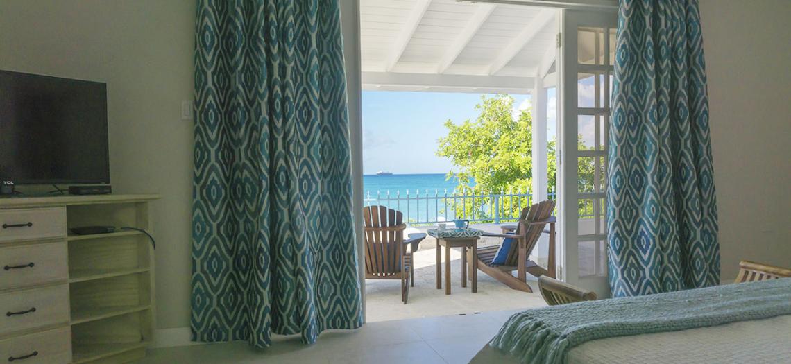 Sandgate House is a beautiful, newly built, 3 bedroom, 4 bathroom, fully equipped beachfront property offering in excess of 2,000 sq.ft of comfortable living space. It is located to the North of our Bridgetown Harbour and is just a few minutes drive to Warrens or Holetown with many amenities including golf at the world renown Sandy Lane Golf Course. One can enter the property from the parking area via solid front door or electronic garage access. Immediately the essence of this detached property with its combination of Caribbean and contemporary flare is noticed. The owner has given consideration to relaxed living and entertaining in that the kitchen with its granite countertops and island is just off of the main living area with quaint dining. The entire lower level has a wrap around covered passageway leading onto a generous covered patio, lounge and dining area all offering unobstructed views of our white sands and glistening ocean. There is a salt water plunge pool and deck just off of the lounge area, perfect for tanning, and the bar is conveniently positioned between the kitchen and the deck. Just a few steps away one can paddleboard, snorkel or just laze and enjoy the gentle lapping of the ocean. The upper level offers two bedrooms to the East of the stairs, both have en-suite bathrooms with shower; one has built in closets and sleeps four – ideal for teenagers or children, while the other has a kingsized bed, built in closets and additional chest of drawers. The Master bedroom located towards the West has an en-suite bathroom with shower and walk in closet. Via full French doors one has access onto the large open patio overlooking the sea, truly a great space to sit and enjoy your surroundings or those romantic nights together. The bedrooms are air conditioned and have ceiling fans and flat screen TV’s, the property has security grills throughout, an alarm system managed be a reputable security firm and beautiful garden to the West. Generally peaceful this wonderful property is airy and comfortable, well suited to many. Great sea bathing and paddle boarding; horseback riding nearby and golf a few minutes’ away, coupled with blissful sunsets and cool breezes topped with lovely sunshine can only add to an already anticipated holiday.